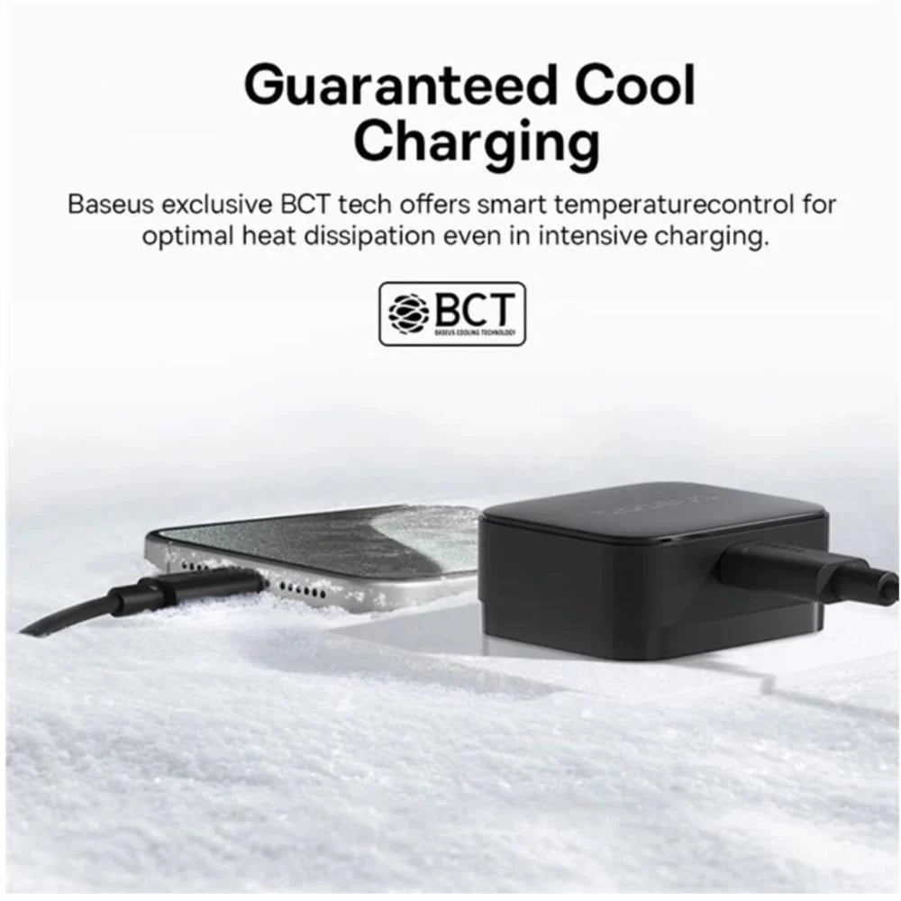 - شحن بارد مضمون توفر تقنية BCT الحصرية من Baseus تحكمًا ذكيًا في درجة الحرارة لتبديد الحرارة الأمثل حتى في ظل الأحمال المكثفة.