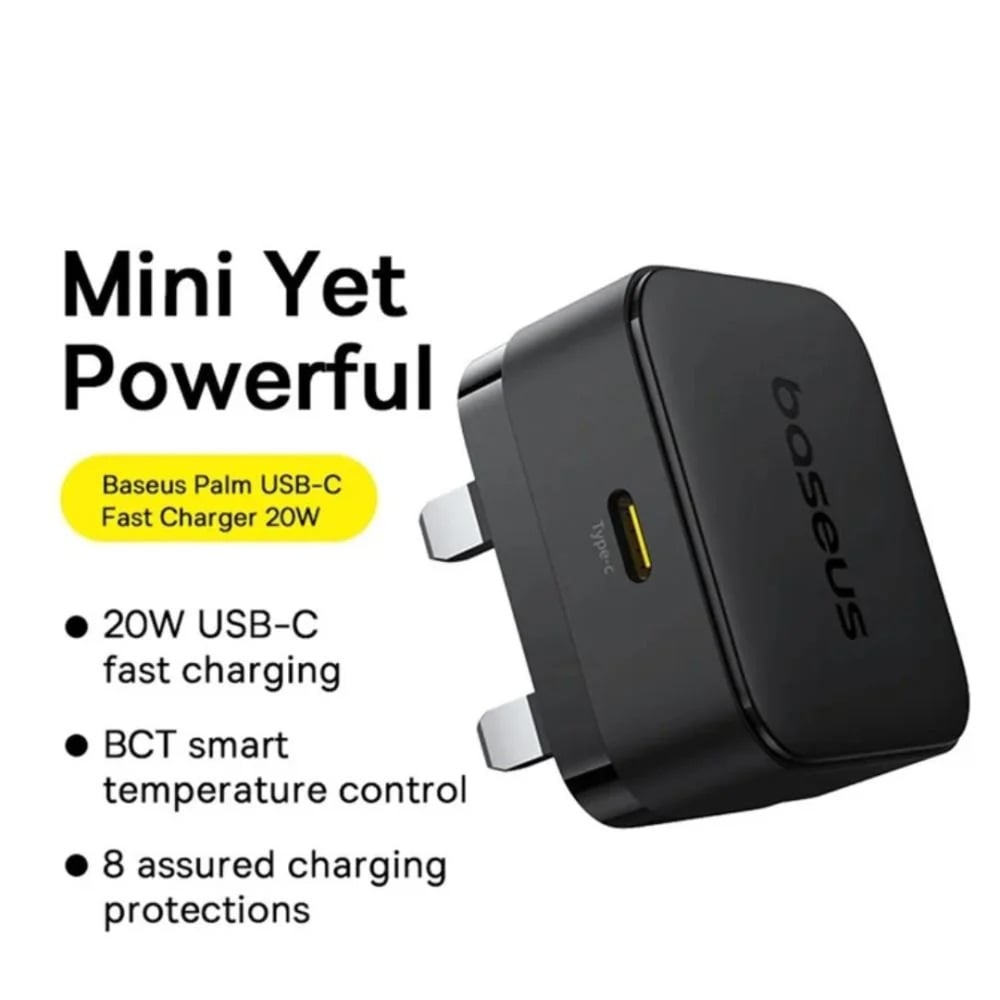 - شاحن BASEUS Palm 20W السريع، محول شحن سريع من النوع C مع قابس وكابل من النوع C