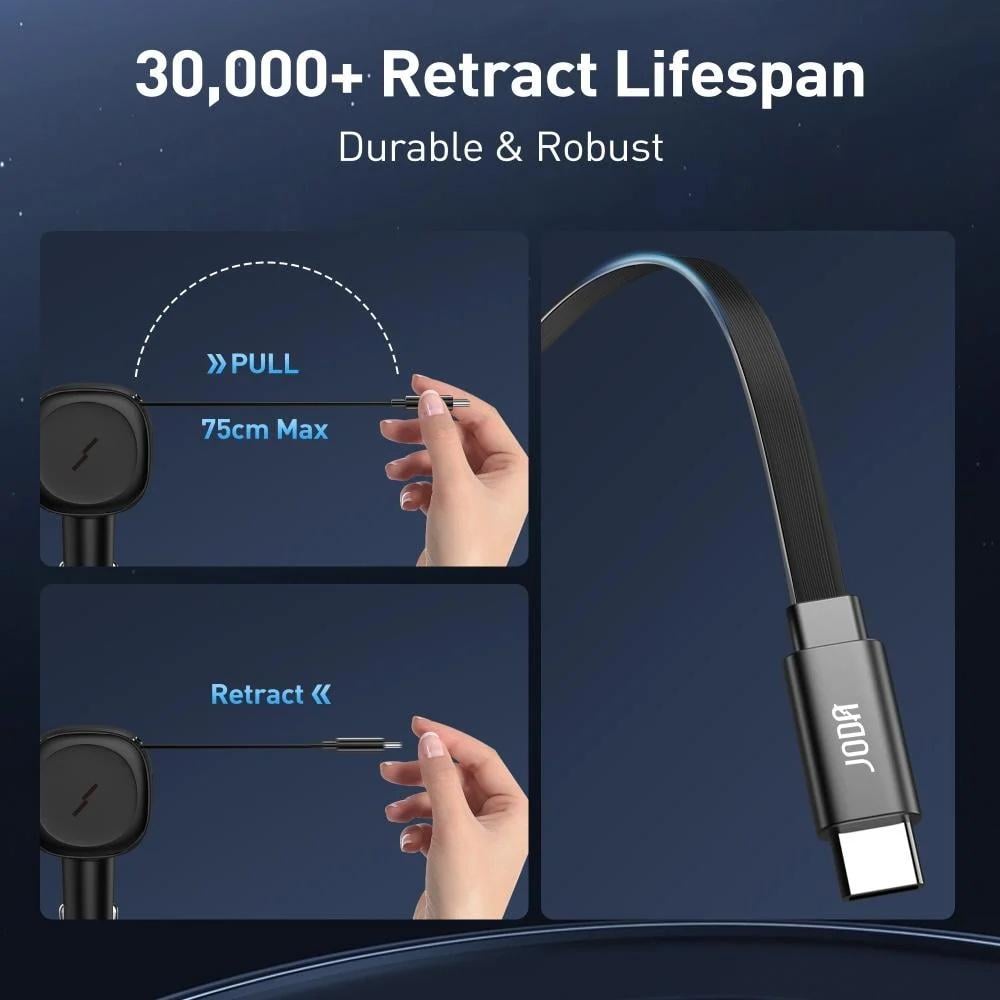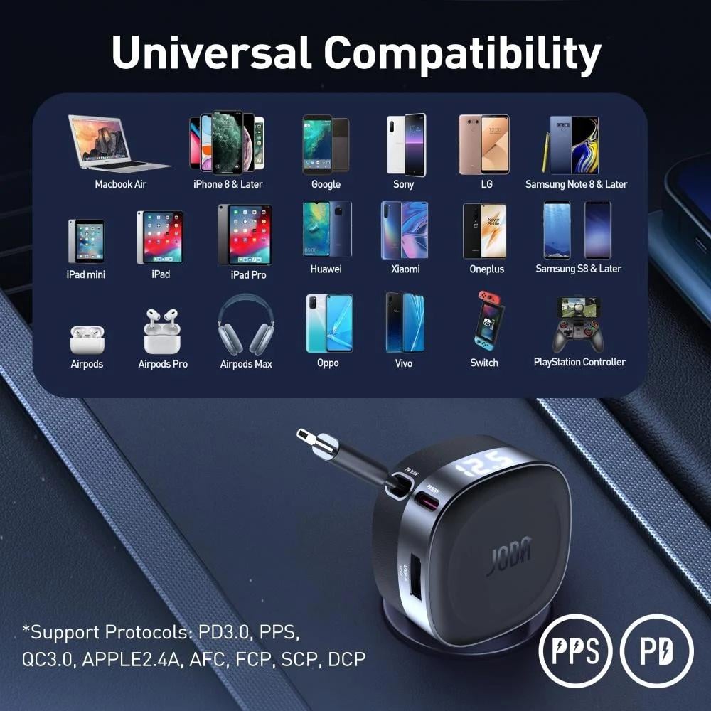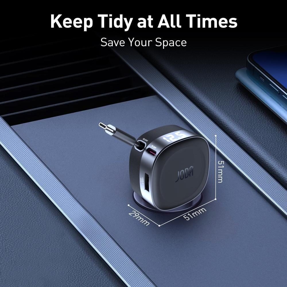جودا -شاحن سيارة كار فليكس 60 واط مع كابل مدمج بمنفذين USB-C و USB-A - أسود